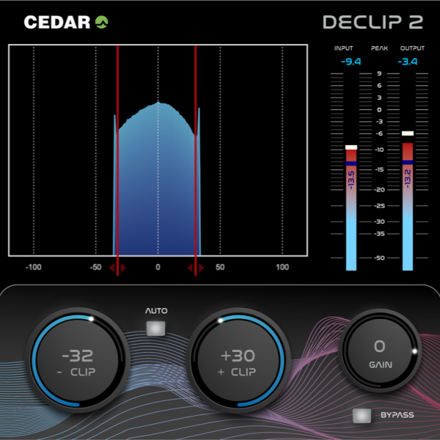 Clipping tritt auf, wenn ein Gerät oder ein Medium, das ein Signal überträgt, einen hohen Pegel am Eingang nicht verarbeiten kann. Es macht sich in der Regel als starke Verzerrung bemerkbar, deren Intensität mit zunehmender Clipping-Stärke zunimmt. Declip entfernt mühelos die geclippten Samples und rekonstruiert das Signal, das ohne Clipping vorhanden gewesen wäre. Dadurch wird nicht nur die Verzerrung beseitigt, sondern auch die Klarheit von Musik und Sprache verbessert und der ursprüngliche Dynamikumfang des beschädigten Audiomaterials wiederhergestellt, um bisher unrettbaren Aufnahmen neues Leben einzuhauchen. Im Auto-Modus verfolgt Declip sogar die Clipping-Amplitude, sodass Material, das nach dem Clipping mit Dynamikpaketen bearbeitet wurde, noch gerettet werden kann. Sollten Toningenieure jemals Clipping feststellen, ist Declip die Lösung des Problems.
